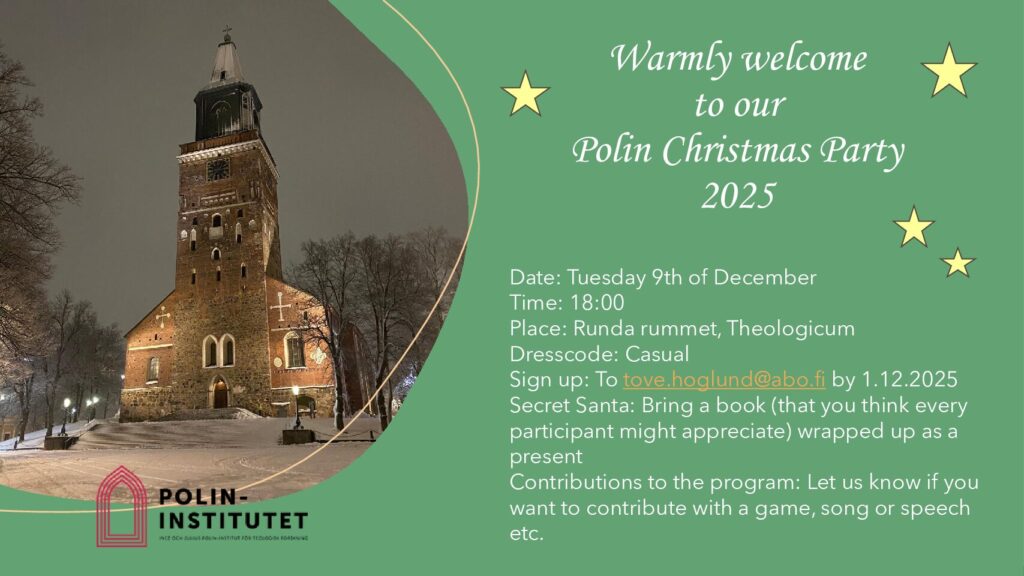 Varmt välkomna till den gemensamma julfesten den 9 december kl. 18.00 i Runda rummet, Theologicum, Biskopsgatan 16.